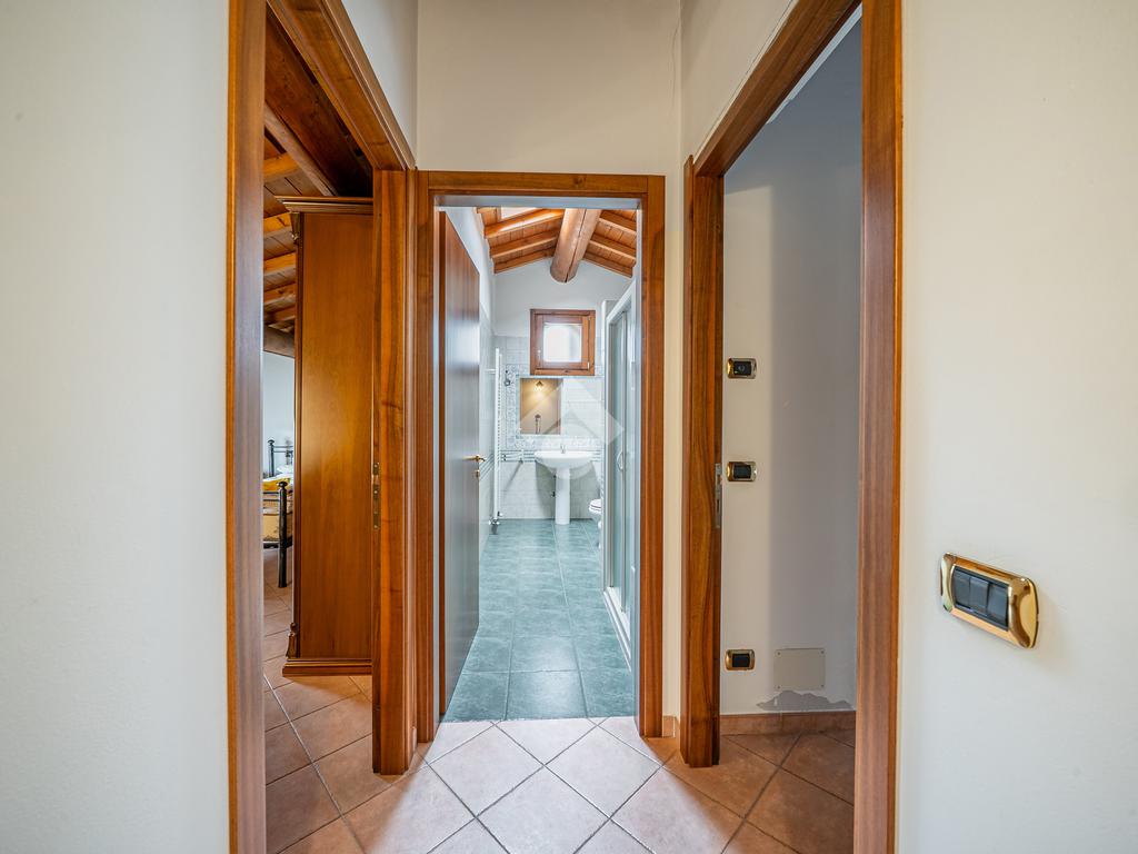 Al piano terra troviamo un pratico porticato che conduce sia all’abitazione che a un ampio garage singolo, ideale anche come magazzino o spazio multifunzione.