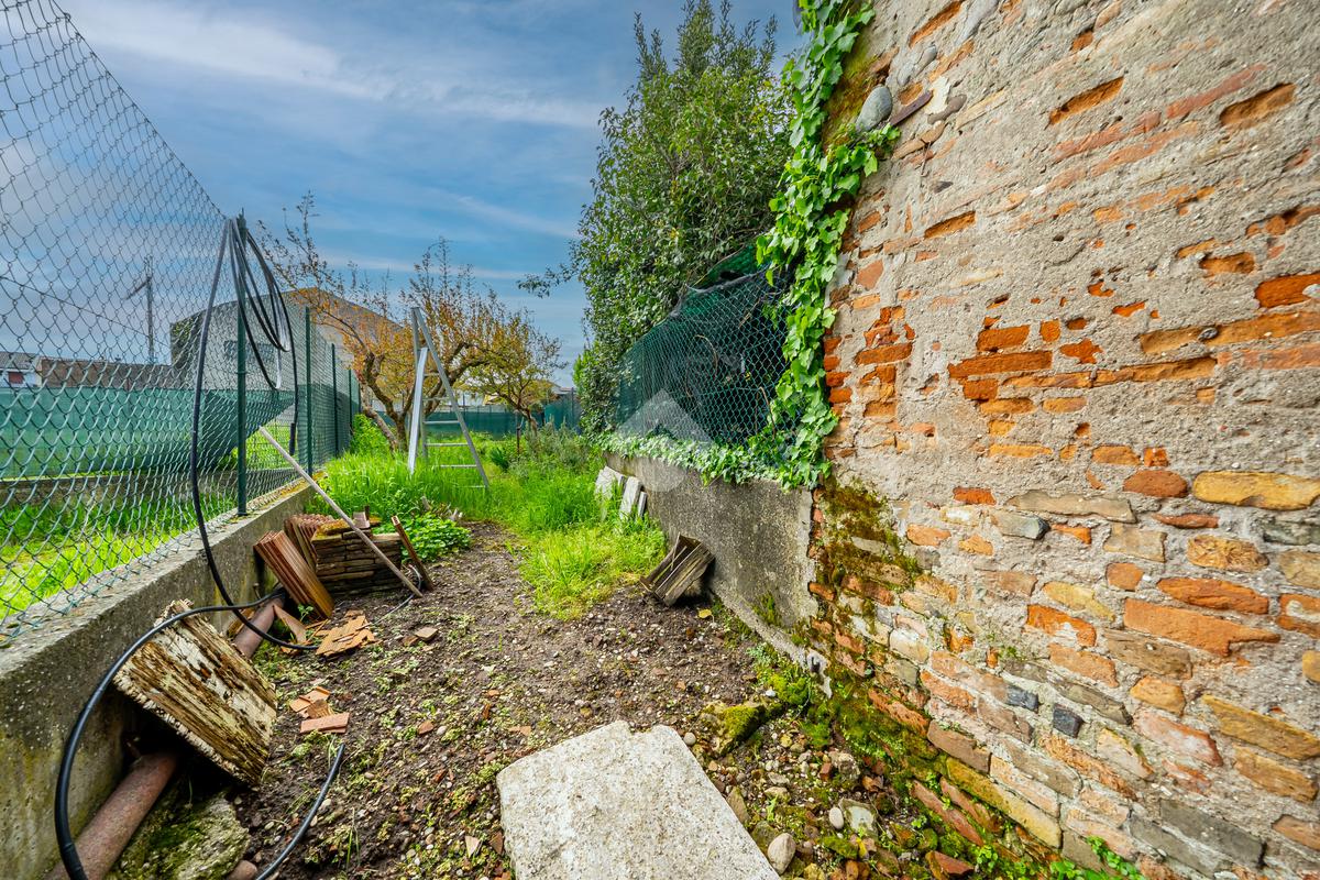 Sul retro della casa ci sono due aree scoperte collegate da una tettoia e con una superficie complessiva di circa 100 mq.